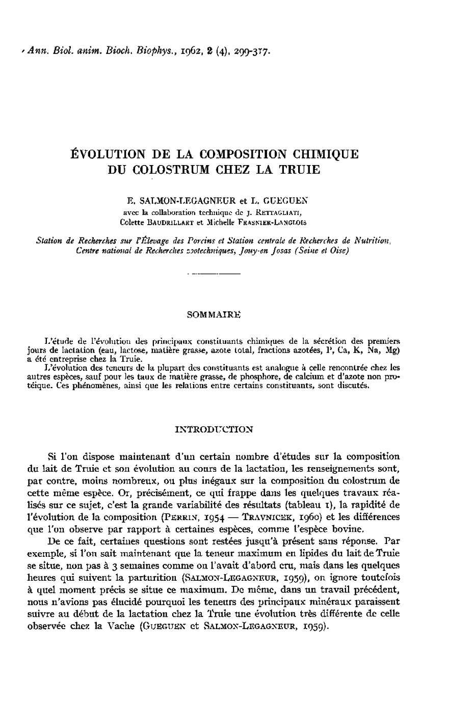 Ann. Biol. anim. Bioch. Biophys. 2 (1962) 299-317